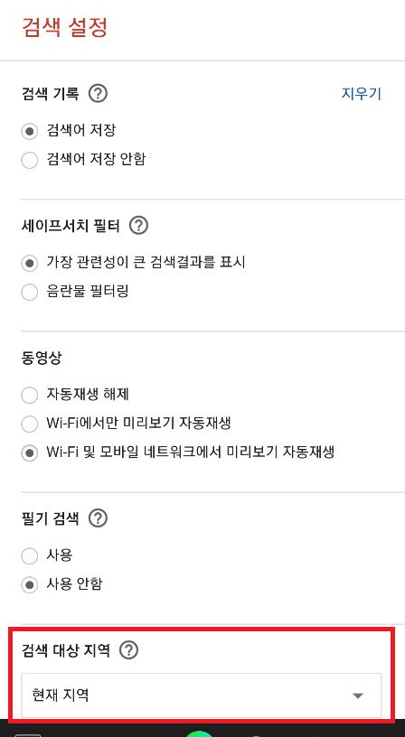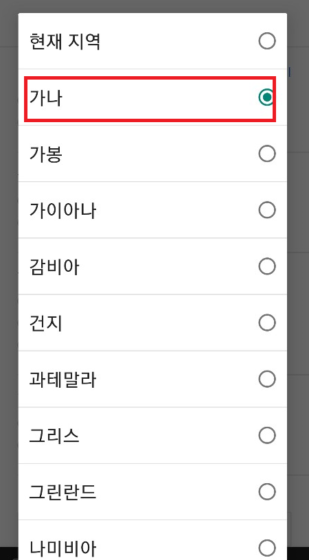 아래부분의 검색대상지역을 (외국 아무나라로)선택해줍니다